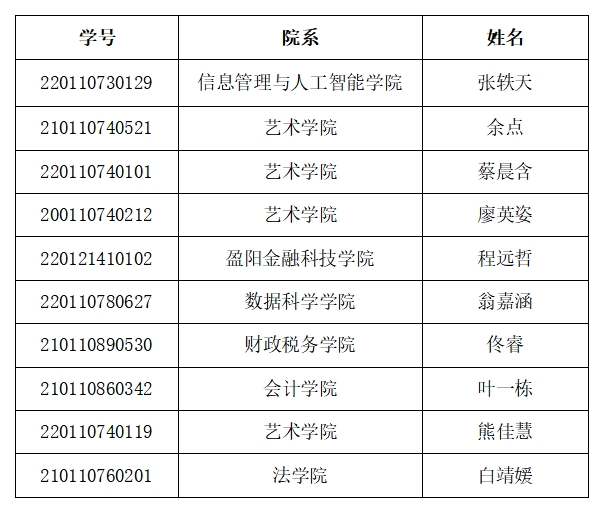 根据《关于开展2023年本科生创业奖学金评选工作的通知》要求,经学生申请、各国产视频 初审推荐、校评审组审核、专家现场评审,现就国产视频 2023年本科生创业奖学金初评名单公示如下: