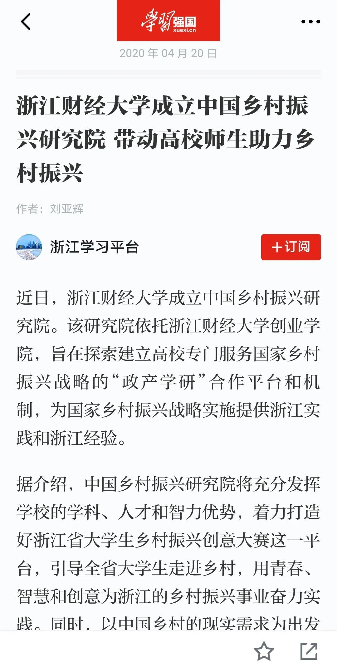 ,旨在探索建立高校专门服务国家乡村振兴战略的“政产学研”合作平台和机制,为国家乡村振兴战略实施提供浙江实践和浙江经验。
