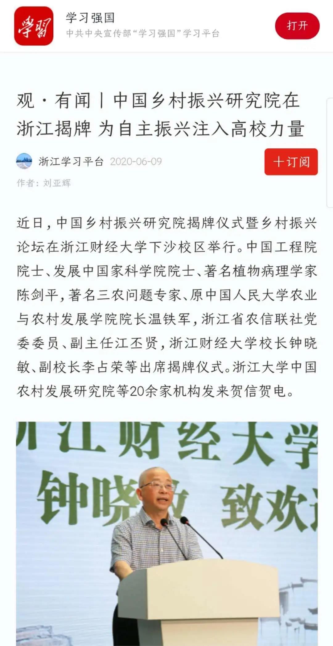 校长钟晓敏、副校长李占荣等出席揭牌仪式。浙江大学中国农村发展研究院等20余家机构发来贺信贺电。