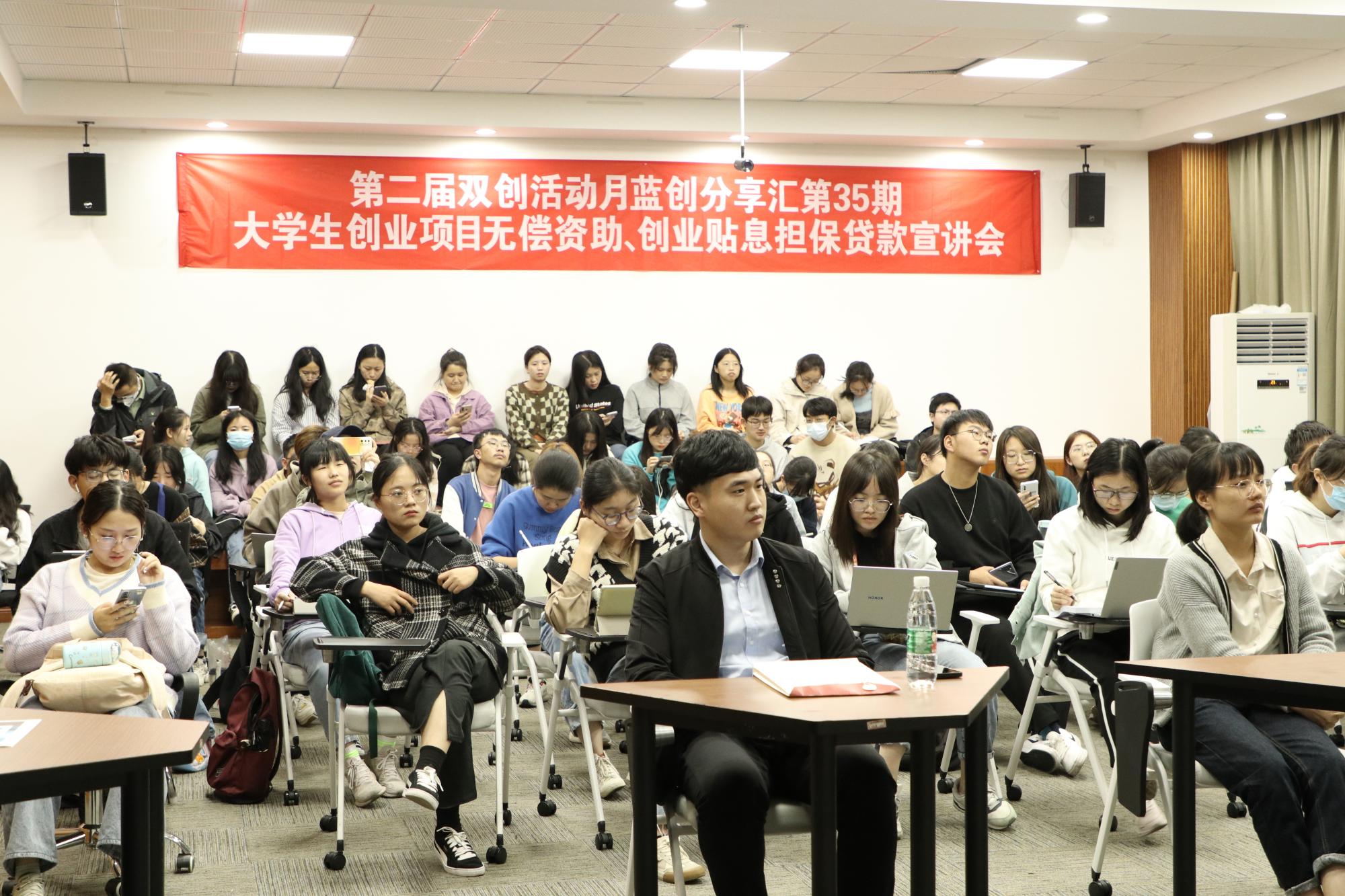 主办、绘梦蓝创空间承办的的第二届双创活动月蓝创分享汇第35期—大学生创业项目无偿资助、创业贴息担保贷款宣讲会在绘梦蓝创空间102室顺利举行。本次会议邀请了杭州创业发展促进会刘琮杨先生、浙江中睿融资担保有限公司邓惠丽女士和杭州联合银行下沙支行王宁先生、绘梦蓝创空间负责人郑洋老师围绕大学生创业项目无偿资助、大学生创业房租补贴和创业贴息担保贷款等不同主题开展了深入的讲解。