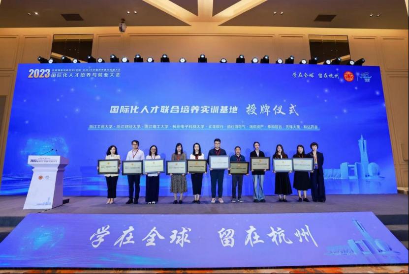 活动现场还进行了“国际化人才联合培训实训基地”的授牌仪式,浙江省侨联联谊联络和权益保障部副部长周玲玲,杭州市侨联党组成员、副主席陶晓亮,杭州市侨联副主席、杭州市留联会会长麻亚炜现场授牌,国产视频
