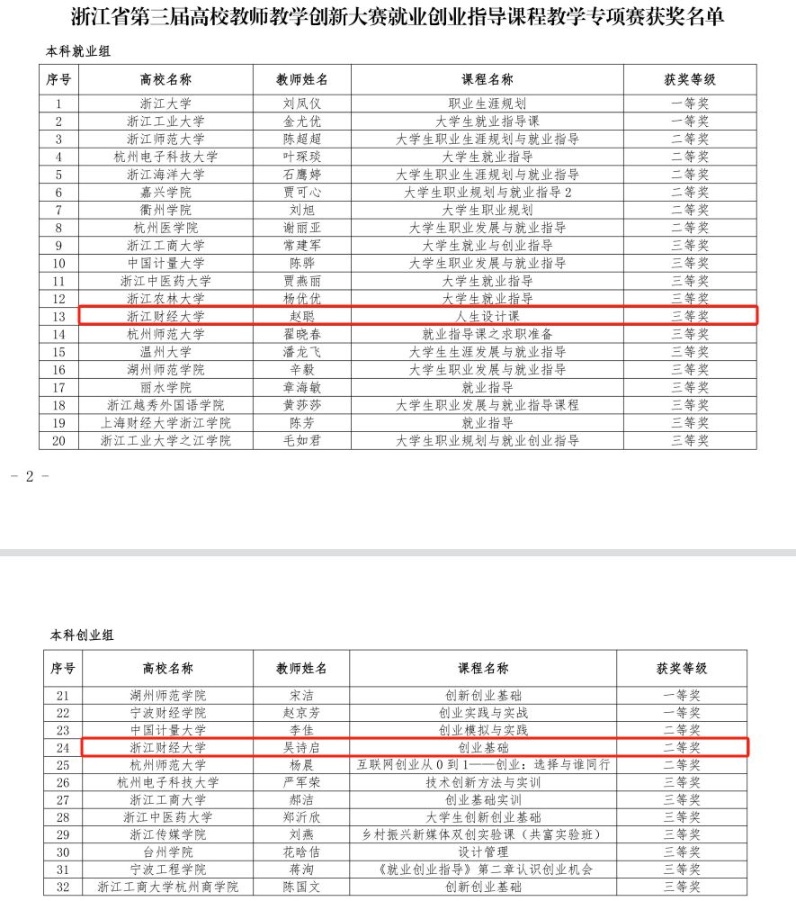 近日,由浙江省教育厅指导,浙江省高等教育学会、浙江省教育发展中心主办的浙江省第三届高校教师教学创新大赛就业创业指导课程教学专项赛结果正式揭晓,国产视频