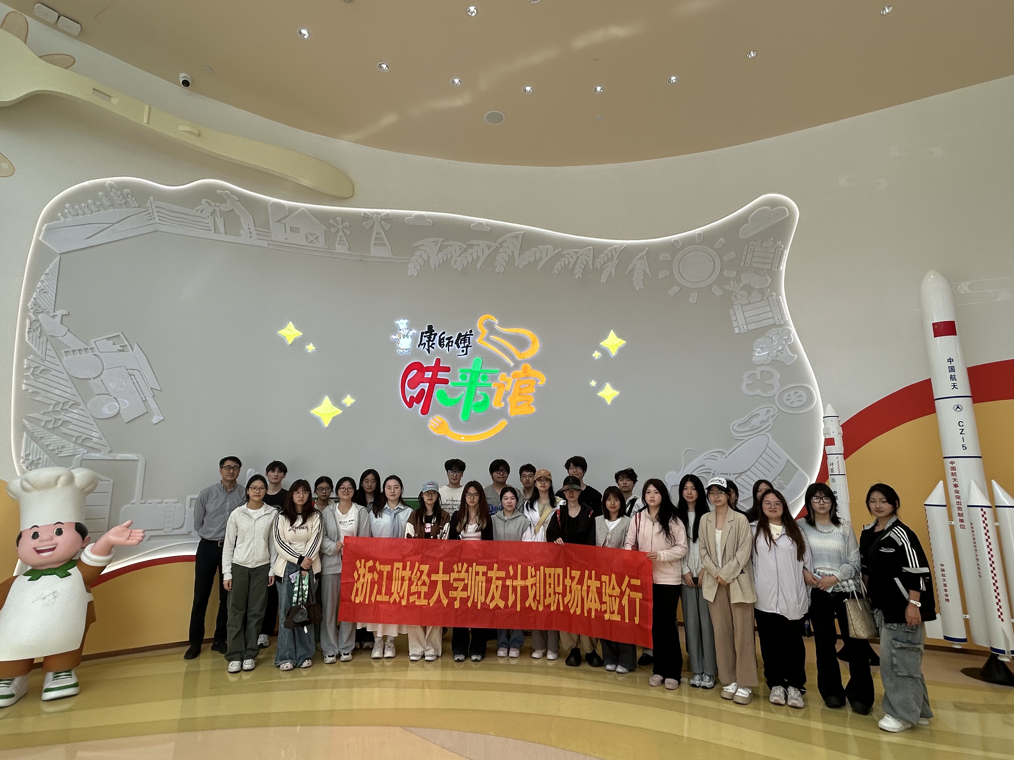 2024年师友计划职场体验行再度走进康师傅梦想探索乐园,30余名学生带着“如何将创意转化为产品”的思考,在参观中寻找答案。来到展览馆内,第一个区域的经典畅销产品墙成为了康师傅最直观的商业案例库:红烧牛肉面的国民级口碑、雪菜鸡蛋牛肉面的区域化成功,背后是精准迎合用户偏好的研发逻辑,而“减盐版”“非油炸”的迭代,则展现了企业以创新思维回应健康需求的转型智慧。