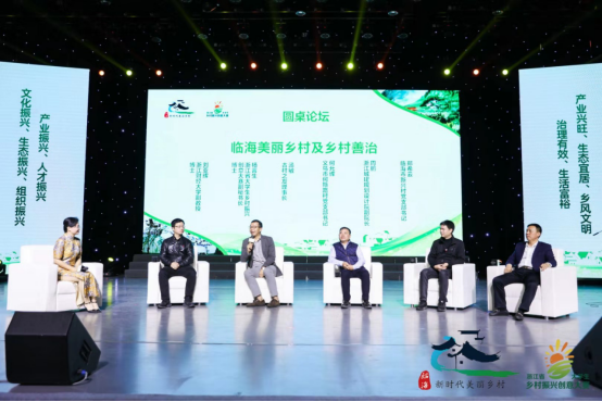 活动的尾声也是活动的高潮部分,大会邀请高校、企业、村镇、公益组织等各方代表嘉宾上台,围绕“临海美丽乡村及乡村善治”开展了精彩纷呈的圆桌话题。从改善农村人居环境的临海样本谈起,嘉宾们从不同的视角深挖现状,并探讨未来发展。多方智力碰撞,激发了许多乡村建设及治理的新方向。圆桌以各位嘉宾的“金句建言”结束了意犹未尽的话题。