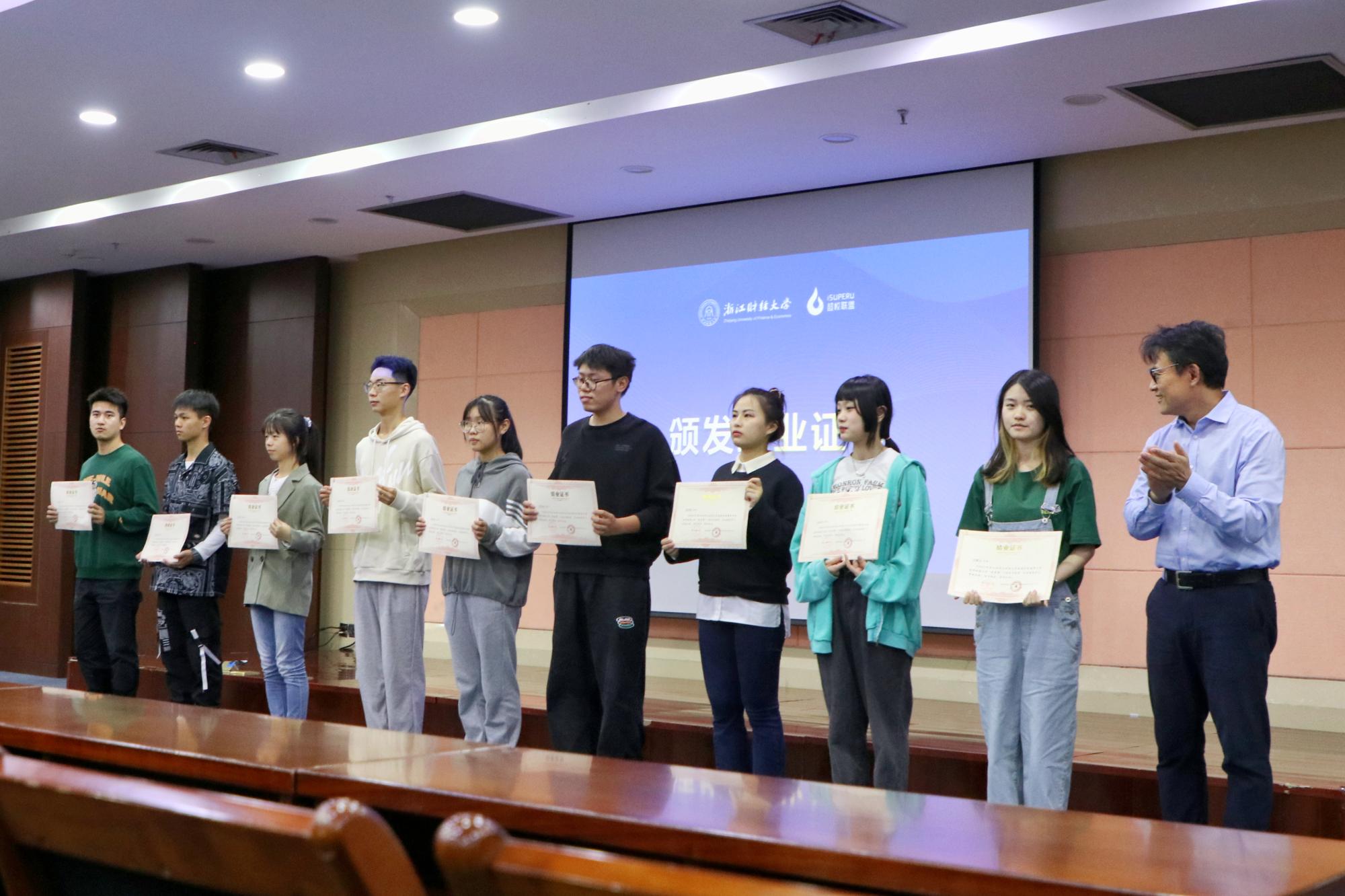 最后,吴诗启副院长向参加本次新零售训练营的创业实践团队颁发结业证书,超企联盟代表傅小杰为获奖的冠军、亚军、季军团队颁发获奖证书和现金奖励,童院长为个人专项获得者颁奖。