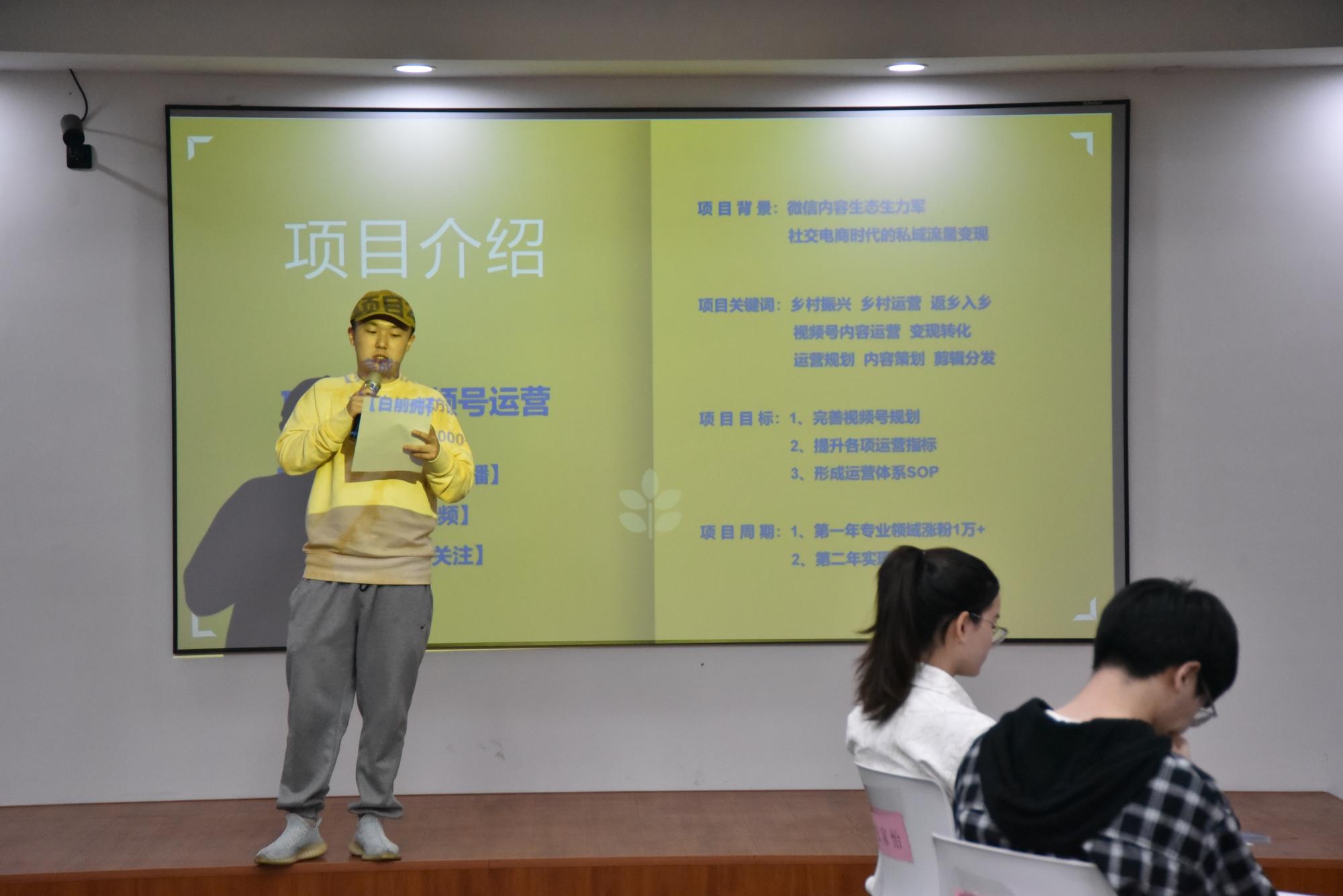 活动进行到了最后一个环节——无领导小组讨论。在本环节中,同学们需要充分利用已知的各类资源、材料,发挥自己的专业特长,针对两个项目形成策划方案并做汇报,同时需要接受三位面试官的犀利提问。经过30分钟的激烈讨论与高强度的头脑风暴,两组分别汇报了最终的项目策划方案。第一组提出了“IP形象”、“Vlog全程记录”等许多新颖有趣的创意,第二组则以“三个目标,两个平台,一个模型”为主线介绍了组内成员的想法。