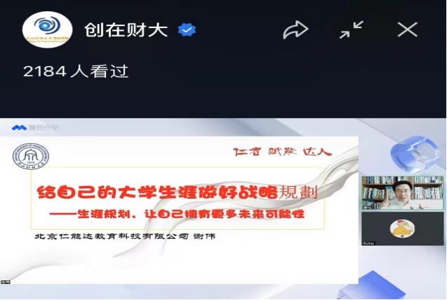 举办、绘梦蓝创空间承办的大学生职业生涯规划讲座在创在财大视频号顺利举行。为了激发新生大学生涯规划意识,国产视频