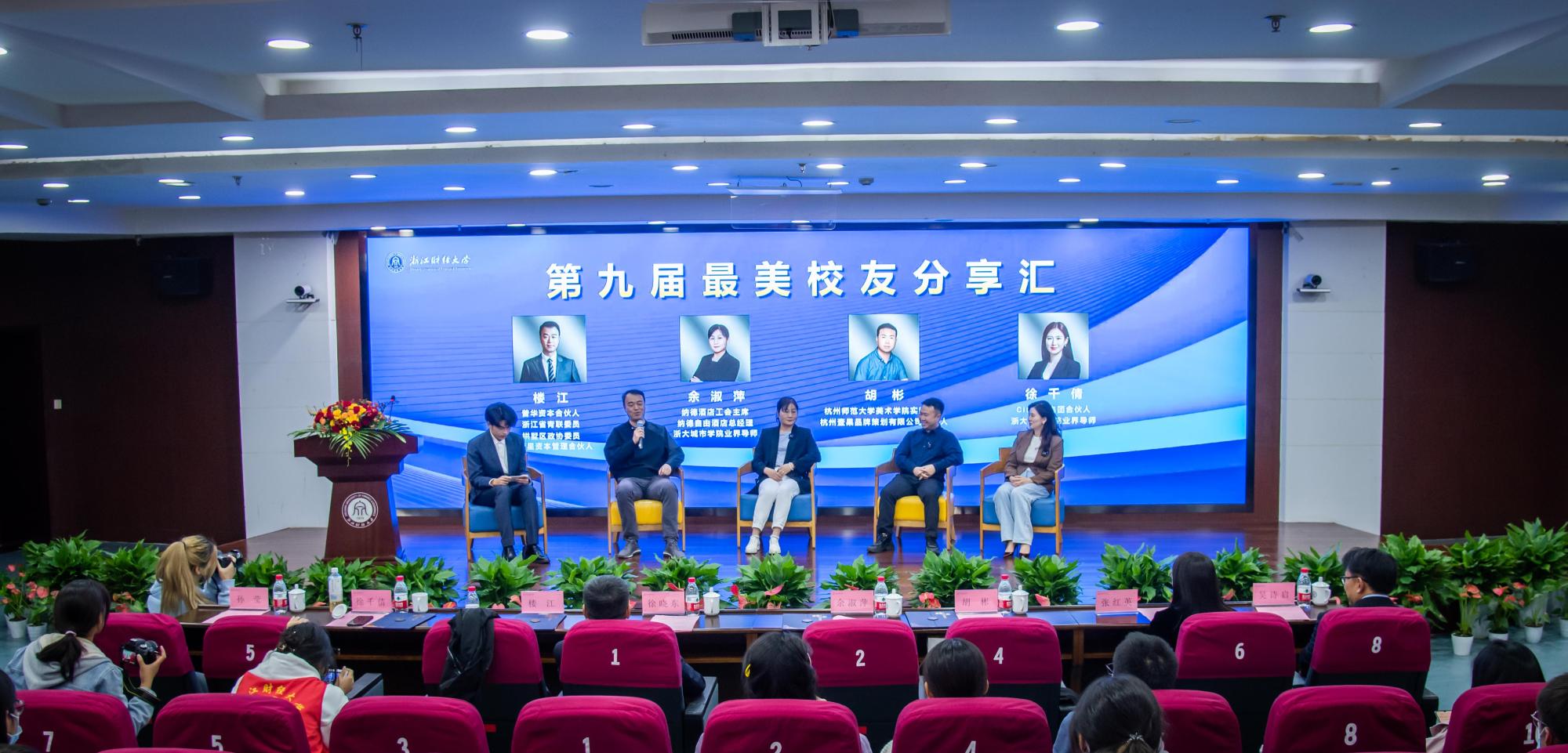 11月5日,第九届“最美校友”事迹报告会暨双创分享会在下沙校区举行。校党委委员、副校长徐晓东和楼江、余淑萍、胡彬、徐千倩等4位校友及师生代表出席报告会。