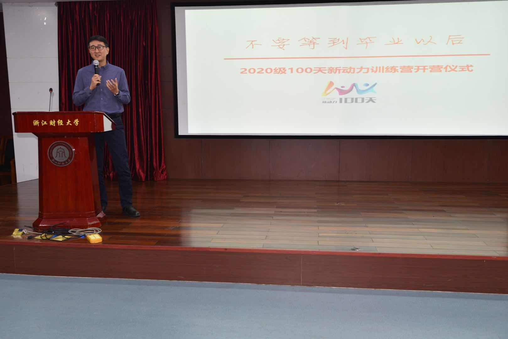 “训练营的课程分为课程学习、团队共创、行动训练三个模块,我们希望可以培养学生们的创新创业能力,同时,通过各类活动,大家可以改善自己的沟通能力、自我管理能力,学会团队合作,为今后的职业发展打好基础。”林老师在开营仪式上发表讲话。他向学生分享了“100天新动力训练营钻石模型”,告诉学生应把握好大学时间,对自己的人生有一个合理的生涯规划。