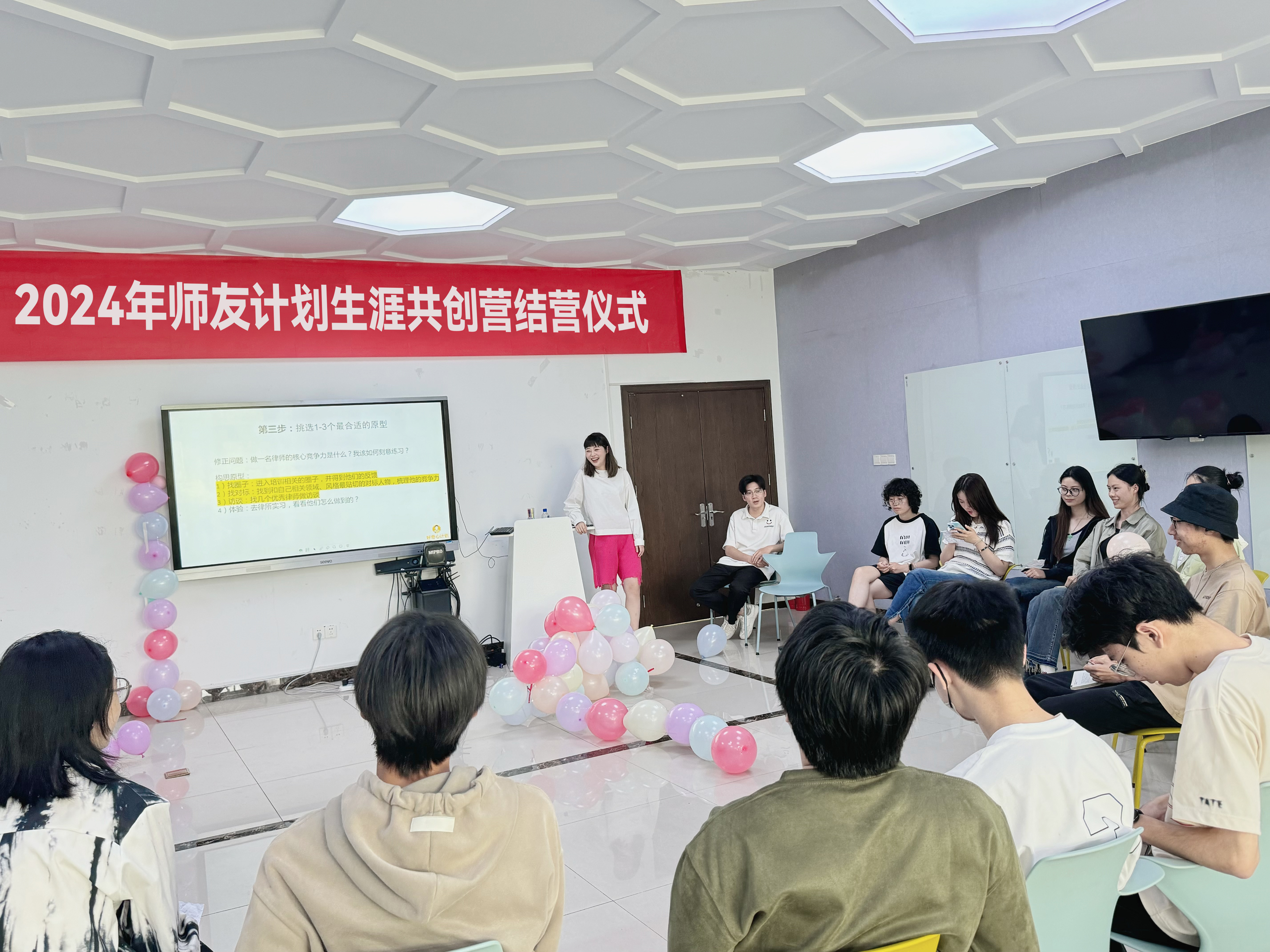 在文化中心207举行“人生设计课结课成果展示”暨2024年师友计划生涯共创营结营仪式。本次训练营共组建4支团队,经过为期近四个月的课程实训及线上持续打卡,每个团队都精心准备本次毕业展示,为训练营画上了一个圆满句号。课程团队教师出席了本次结营仪式。