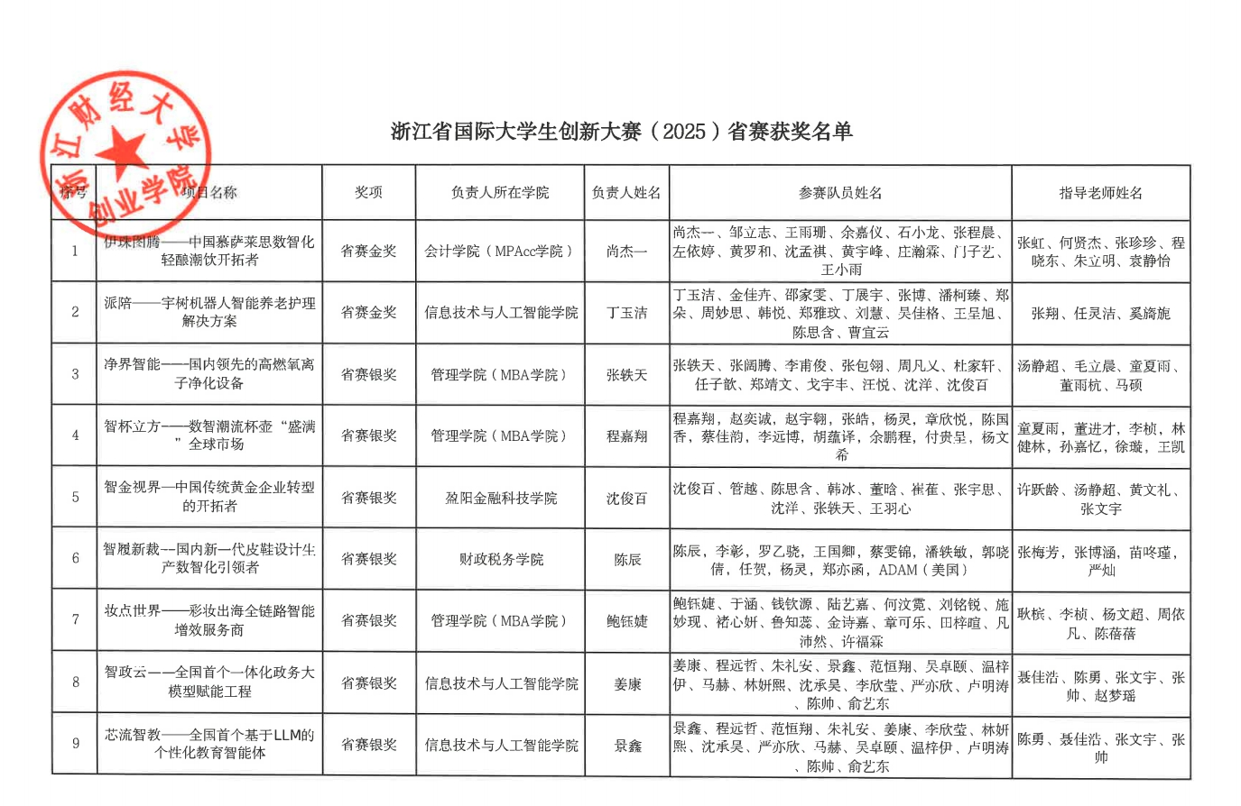 7月13日,由浙江省教育厅、共青团浙江省委员会、浙江省科学技术协会、浙江省学生联合会主办的“农行杯”浙江省国际大学生创新大赛(2025)决赛落下帷幕。经过激烈角逐,国产视频 参赛项目最终获金奖2项,银奖7项,铜奖3项,现将国产视频 项目获奖名单予以公示: