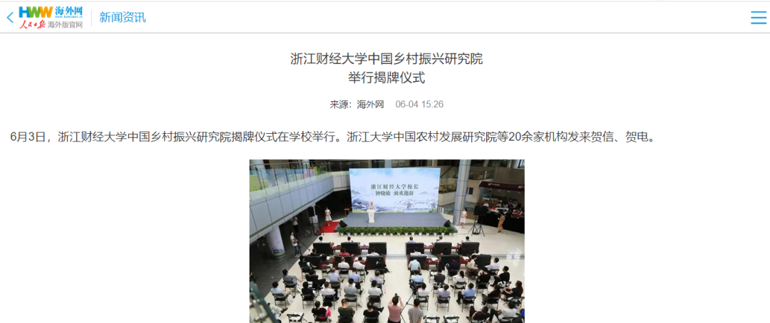 校长钟晓敏、副校长李占荣等出席揭牌仪式。浙江大学中国农村发展研究院等20余家机构发来贺信贺电。
