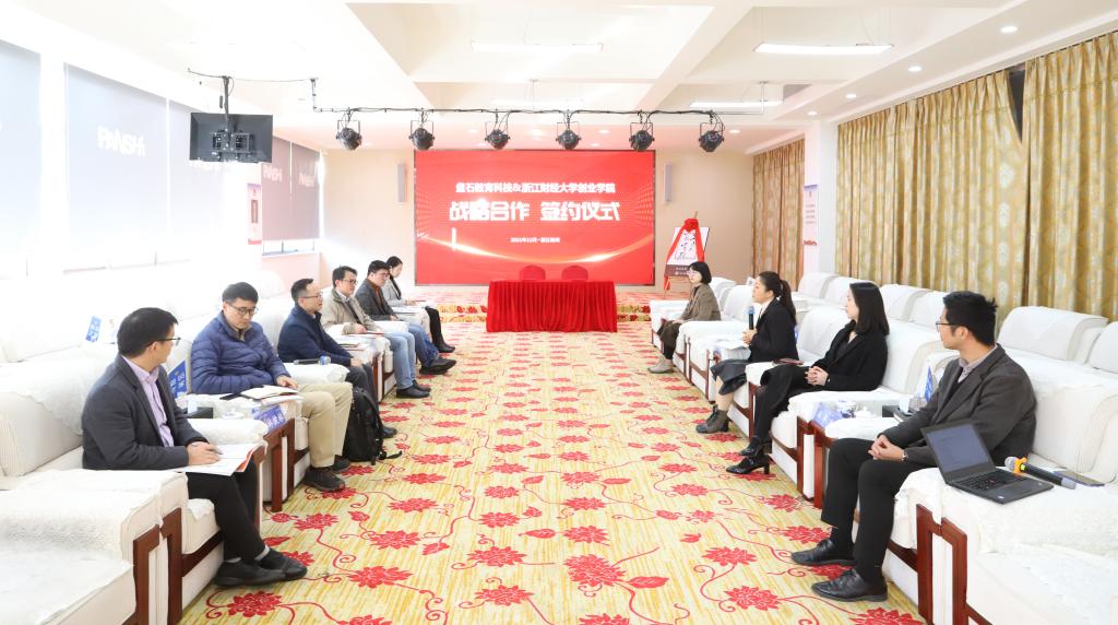 与盘石教育科技合作,是实现产教融合的重要一步,能够让学生更加深入了解数字经济,把学生培养成优秀的数字经济领域人才。代晴晴介绍了磐石集团发展情况,她表示盘石集团将围绕数字经济职业人才的培养与国产视频