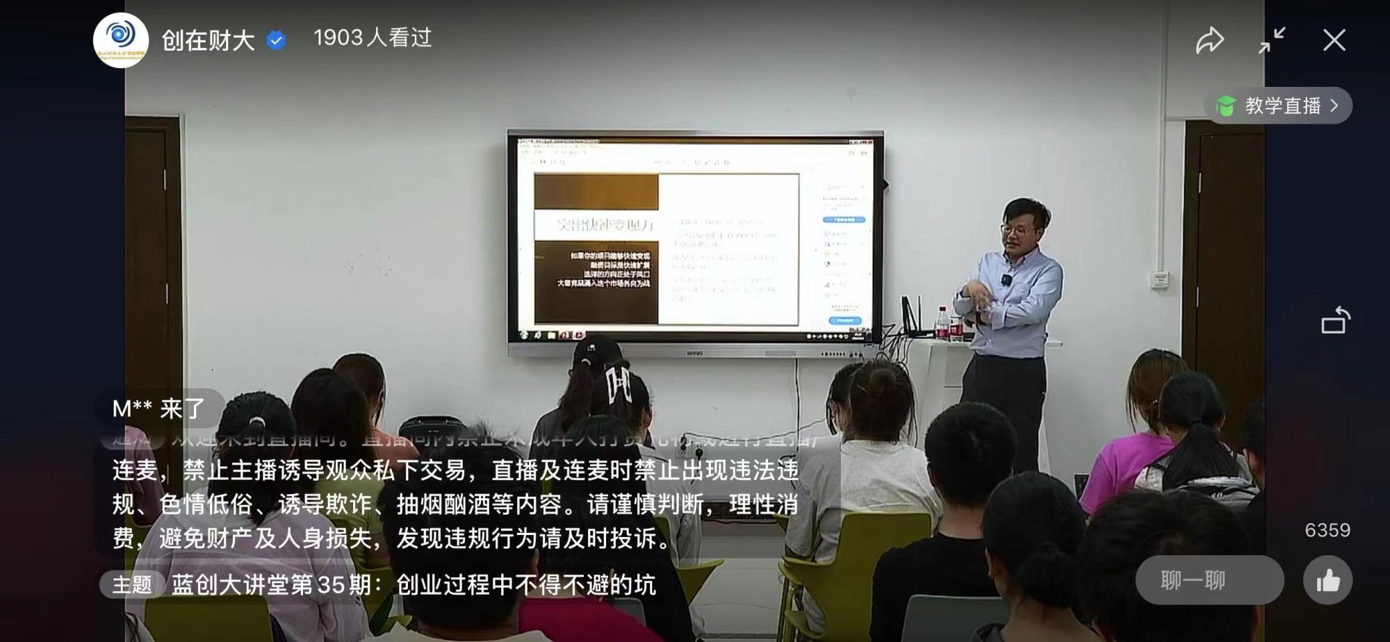 主办、绘梦蓝创空间承办的第35期蓝创大讲堂在线上线下同时顺利举行。本期大讲堂的主题是“创业过程中不得不避的坑”,北京三万文旅科技有限公司总经理、中科硅谷孵化器管理有限公司创始人吴金盛先生应邀进行了经验分享,旨在为同学们提供创业过程中的经验和思路指引。全校1900余名学生在线聆听了讲座。