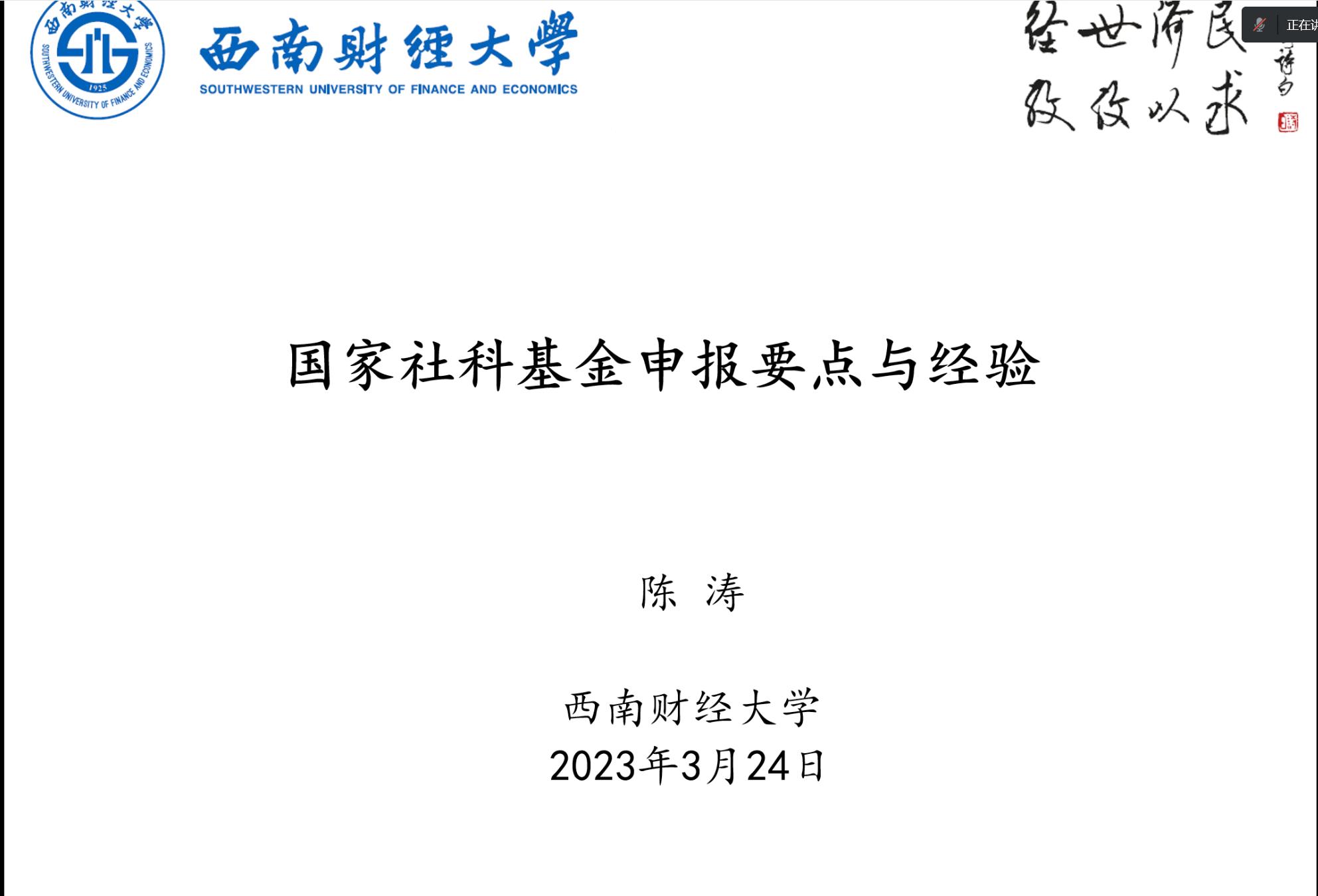 召开国家社科基金申报分享会,邀请西南财经大学副教授陈涛作国家社科基金申报的相关经验分享和交流,国产视频