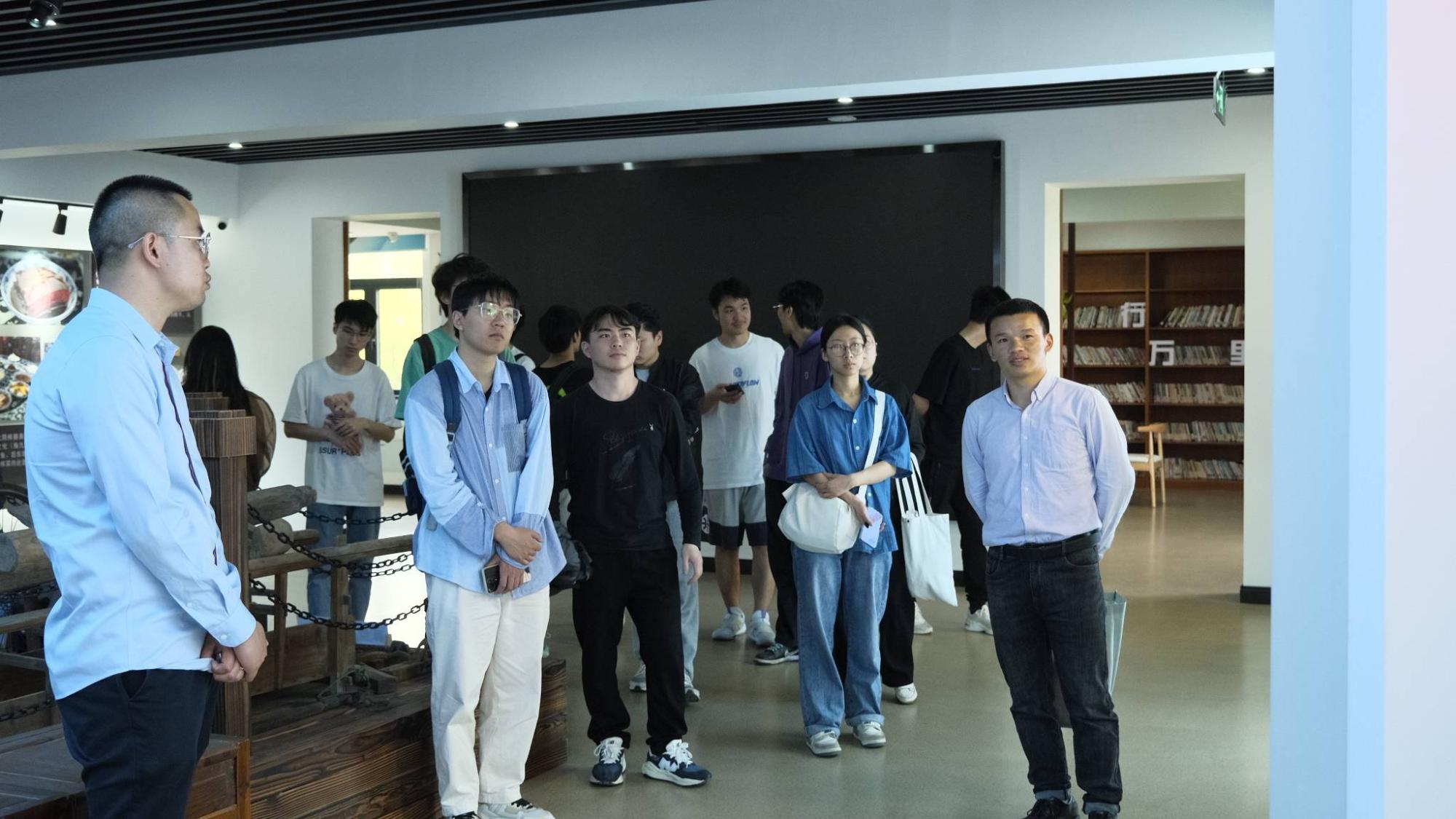 直播培训讲座结束后,钱塘小雅经理高伟伟带领同学们来到了江东村党群服务中心,走进村史馆,了解江东村围垦文化。在这里,同学们详细了解了“民生基建示范”江东村的发展历程、民俗文化内核以及这几年来民生基建的发展。高伟伟指出,江东村也将加大发展力度,更好地提升村民生活质量。