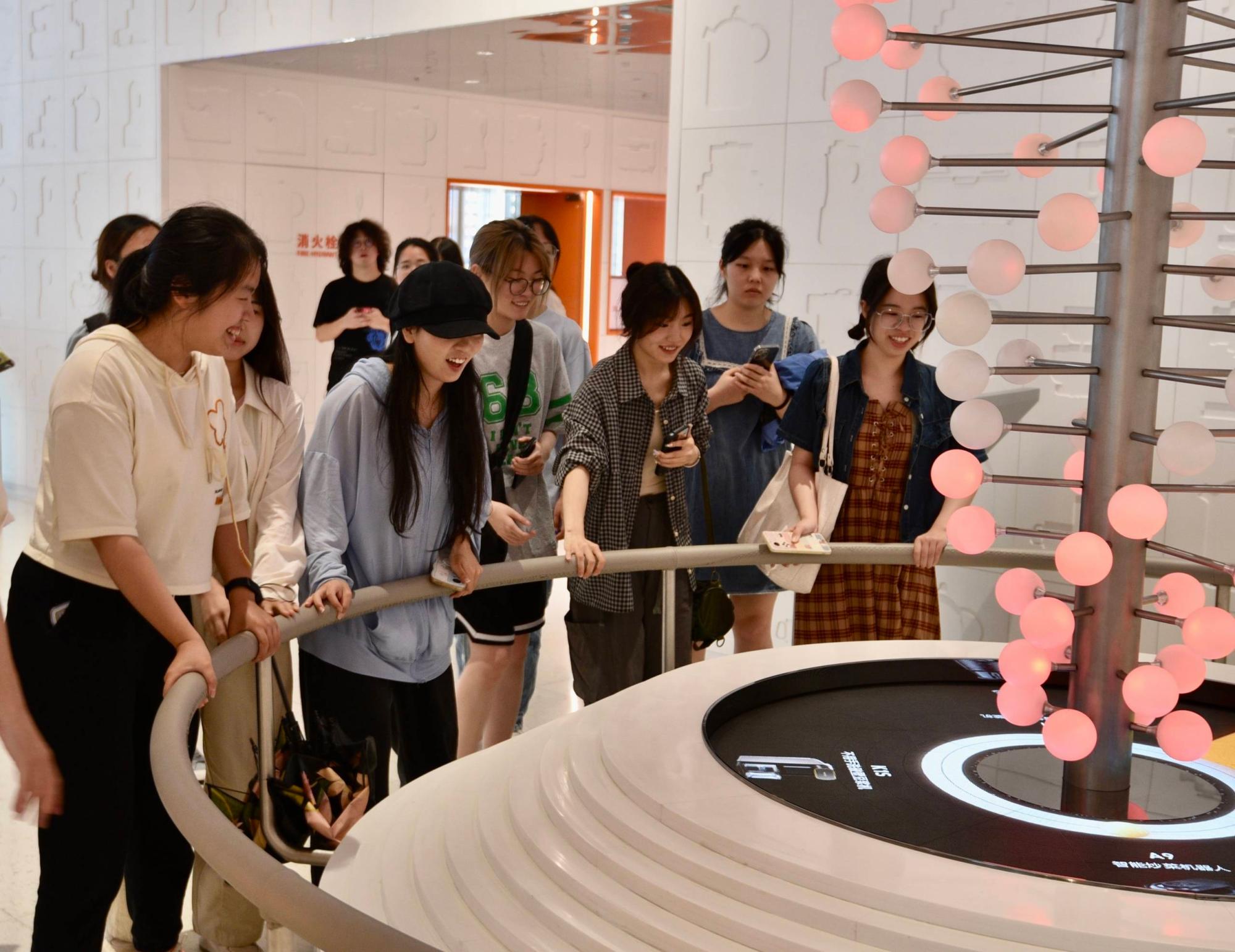 首先,讲解员带领同学们来到九阳品牌体验馆,品尝了豆浆,学习了了九阳企业的发展史,并自己动手体验了手磨豆浆。在讲解员娓娓道来的讲述中,九阳的品牌历史、创新理念给同学们留下了愈发深刻的印象。