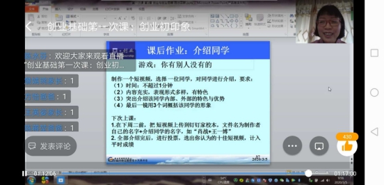 开设的核心课程,也是全校学生的必修课,本学期共有29个教学班,总计1280人选课,面对来势汹汹的新冠疫情,《创业基础》课程组多次组织线上备课会,为疫情之下的线上教学做好了周密安排,新学期第一天,《创业基础》课程任课老师们便“各施神通”,为屏幕前的莘莘学子带来了一堂生动有趣的网络直播课。网络直播课程的开展需要创新内容,也需做好教学反思,以下为大家分享的是吴诗启老师和陈水芬老师的在线教学经验与体会。