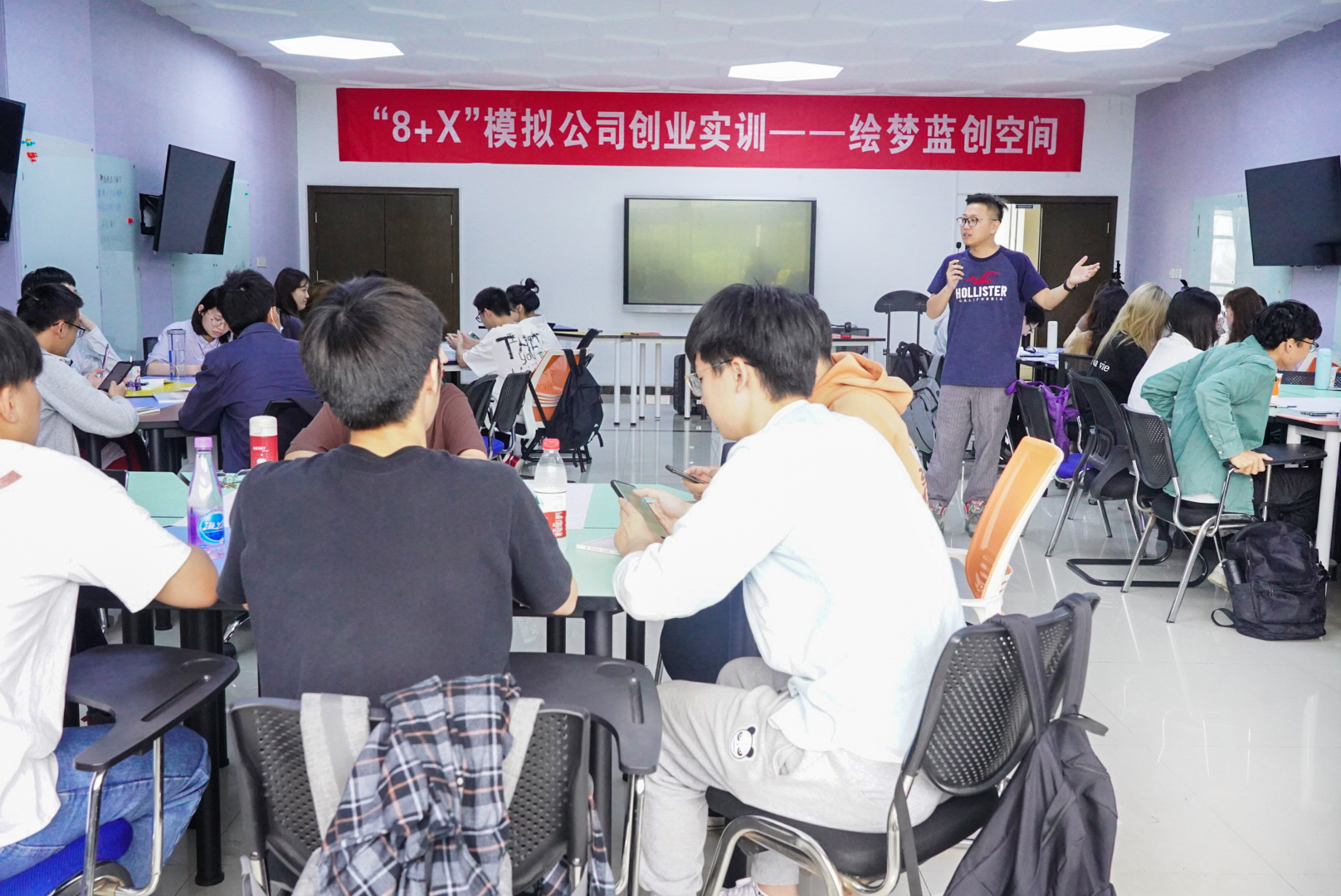 联合绘梦蓝创空间,开展了《“8+X”模拟公司创业实训》课程。