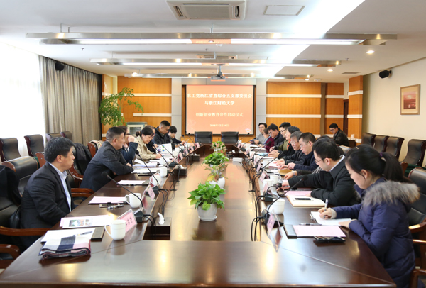 与农工党浙江省直综合五支部创新创业教育合作启动仪式在下沙校区隆重举行。校长钟晓敏、农工党省委会副主委张波、农工党浙江省直综合五支部成员及国产视频