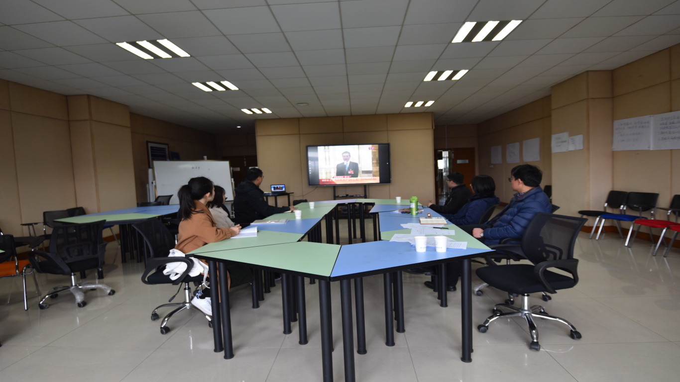 党总支组织教师在文化中心211集中收听收看了十三届全国人大二次会议的开幕式,聆听李克强总理作的政府工作报告。