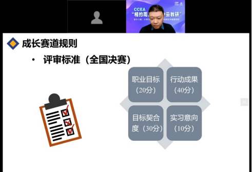 最后,刘海滨结合以往参赛作品案例分析优点和不足,并提供了生涯发展报告的一些结构框架。此外,他在互动区线上交流,有效地解答了师生在备赛过程中的困惑。