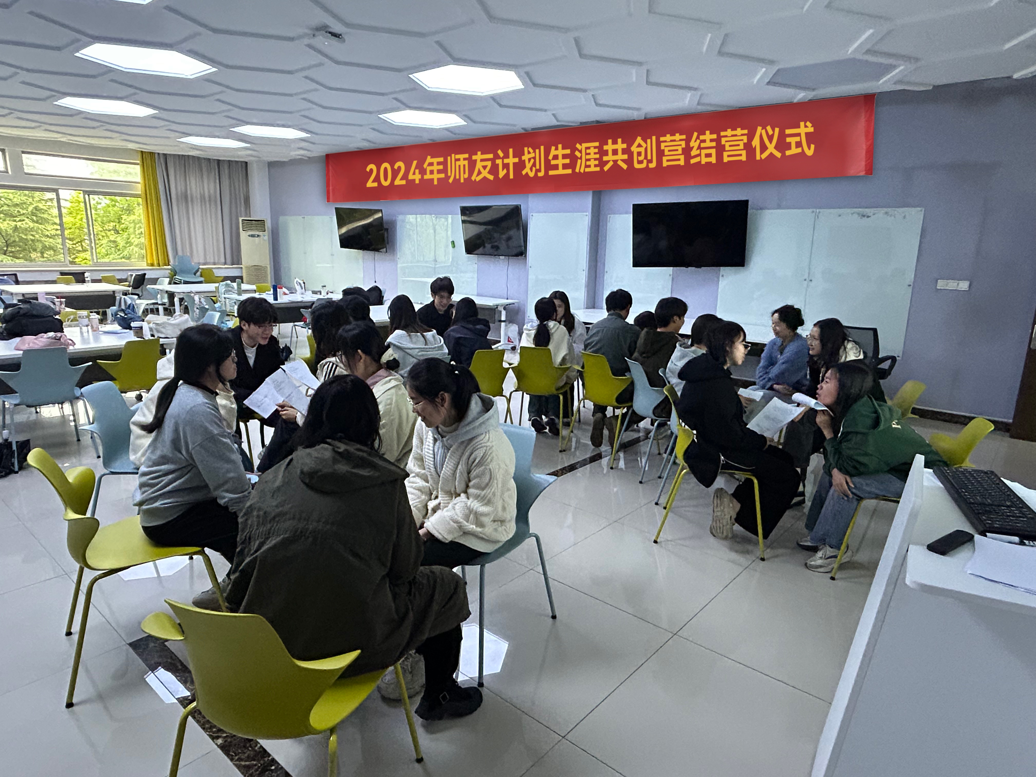 在文化中心207举行“人生设计课结课成果展示”暨2024年师友计划生涯共创营结营仪式。本次训练营共组建4支团队,经过为期近四个月的课程实训及线上持续打卡,每个团队都精心准备本次毕业展示,为训练营画上了一个圆满句号。课程团队教师出席了本次结营仪式。
